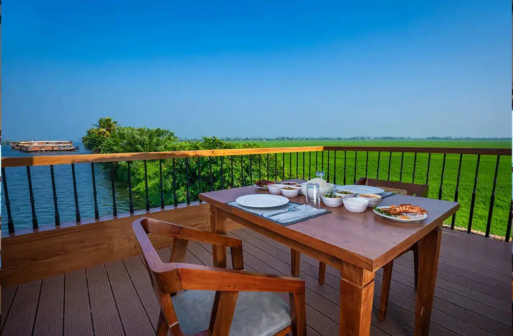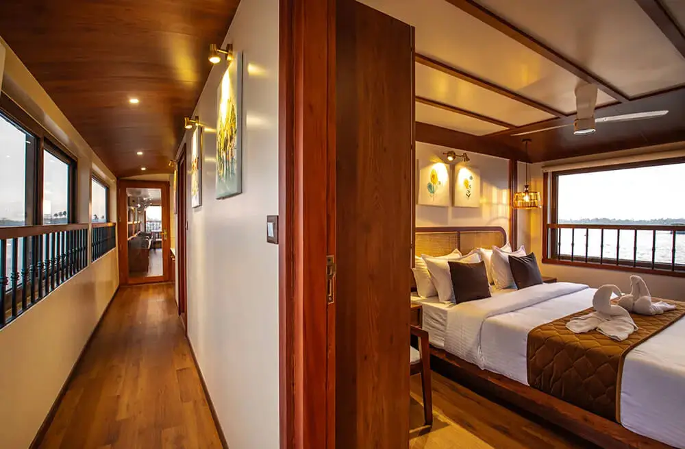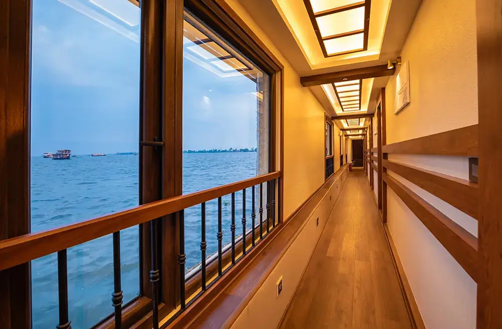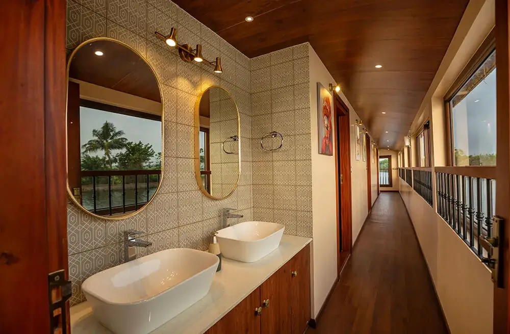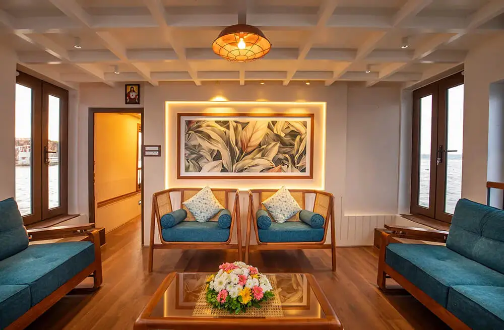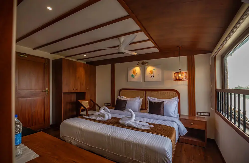Discover the best luxury houseboat in Alleppey with our 8-bedroom ultra-luxury Kerala houseboat, designed for ultimate comfort and elegance. This luxury boat house in Alleppey features full-time air conditioning, a customized Kerala-style food menu, a spacious upper deck with panoramic Alleppey backwaters views, private bathrooms, a TV in the dining area, and an onboard music system. Perfect for families, corporate groups, and special celebrations, this premium houseboat in Alleppey comfortably hosts up to 24 guests. Cruise through the tranquil Alappuzha backwaters on the luxury Kerala houseboat that blends nature’s charm with five-star amenities. Book your stay today and experience the true essence of Alleppey houseboat luxury.